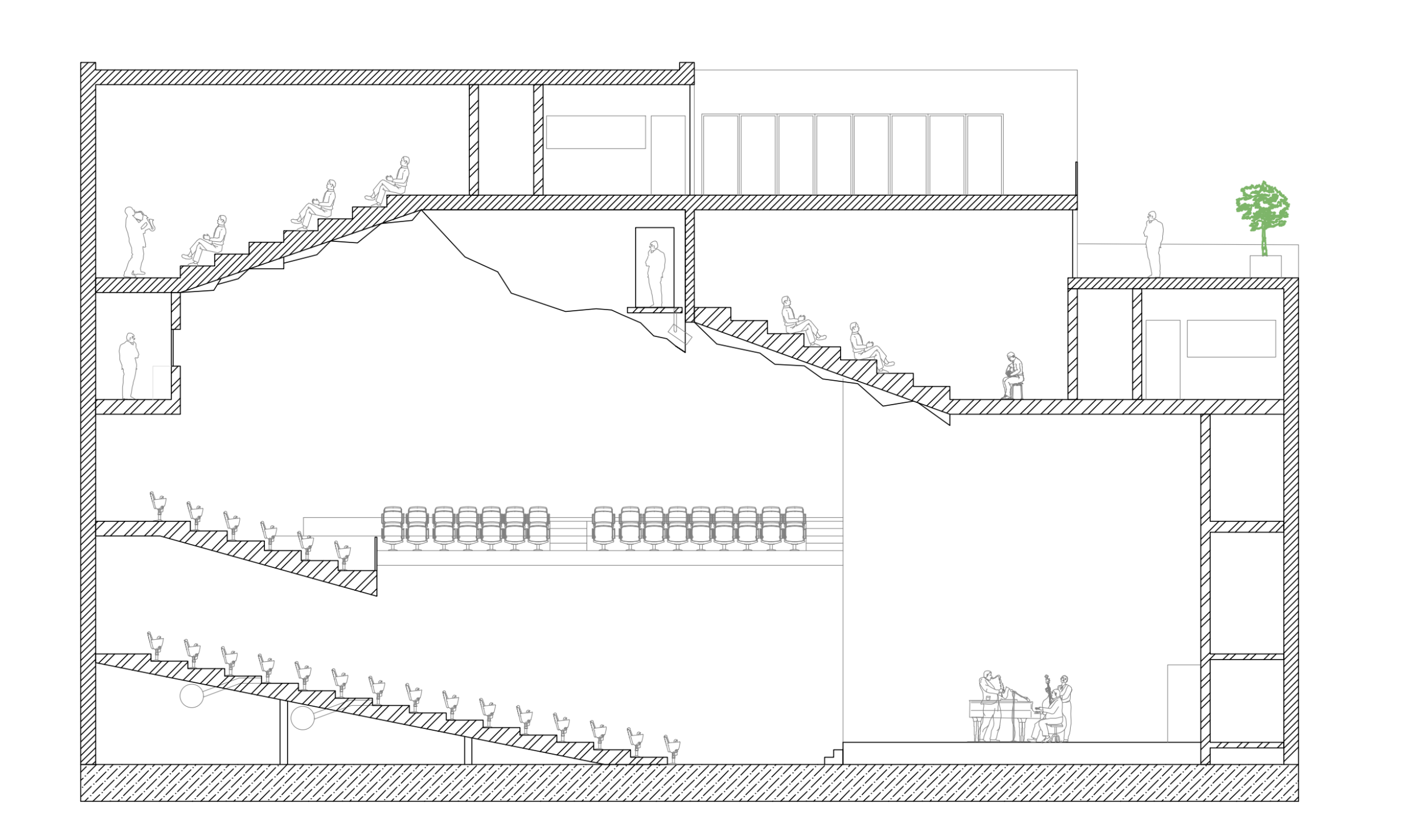 L’objectif de ce projet a été de concevoir un conservatoire de musique en plein cœur de Paris. Ce dernier met donc l’accent sur la création d’un auditorium de 450 places. La conception de salles de représentation secondaires au-dessus de cet auditorium en formant son toit créer une approche architecturale avec un lien subtil entre les espaces principaux et secondaires, renforçant la notion de diversité des représentations musicales.