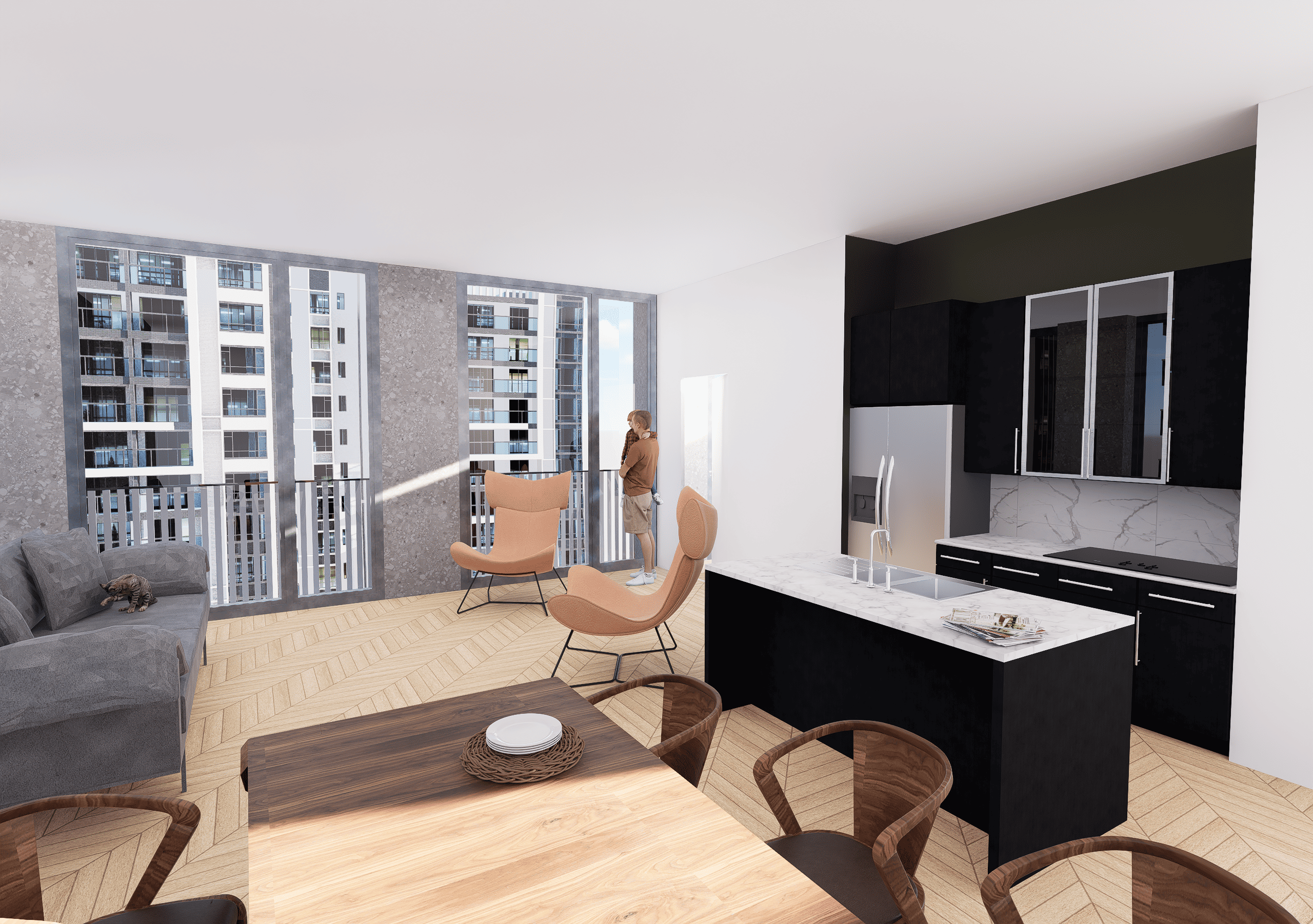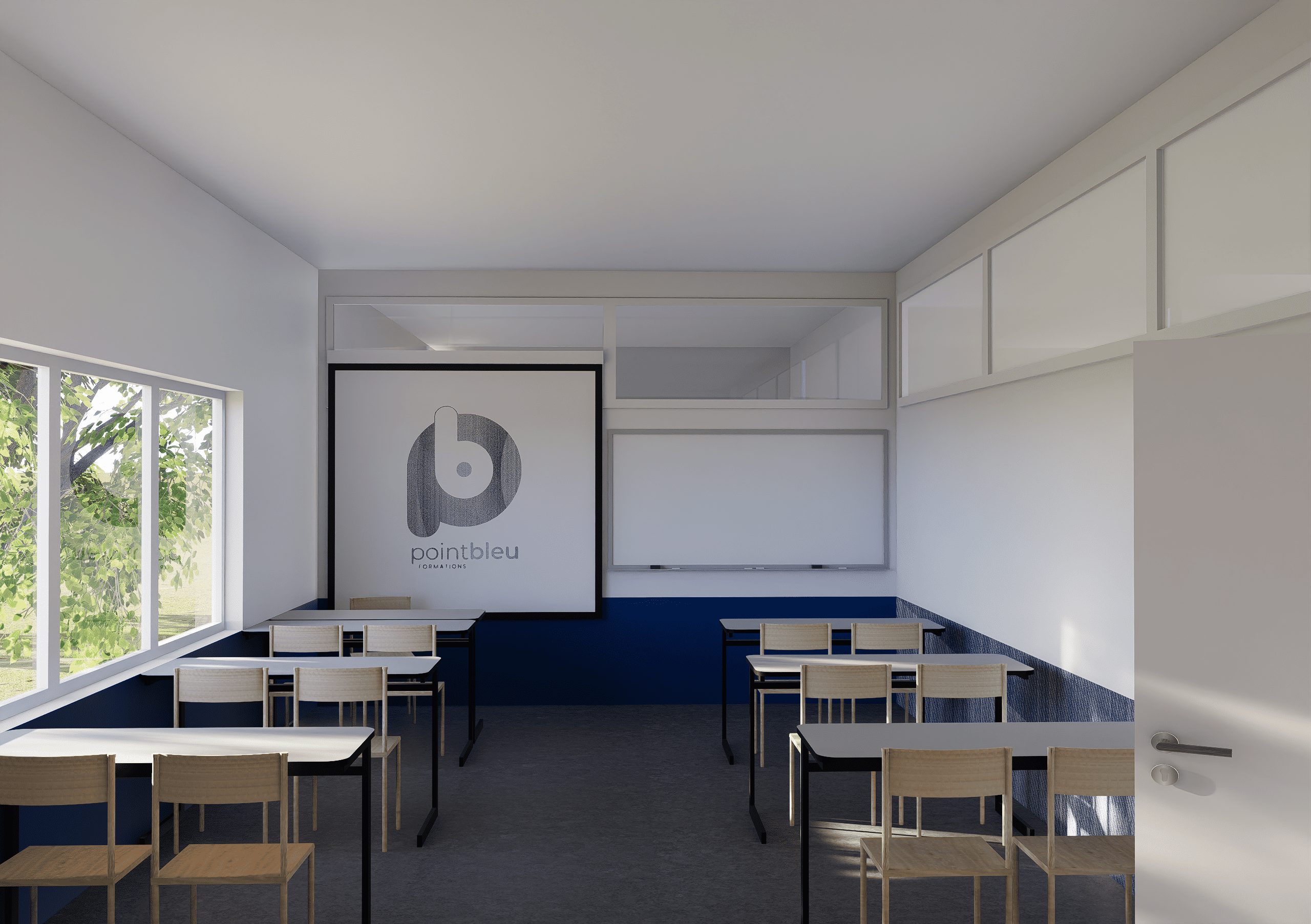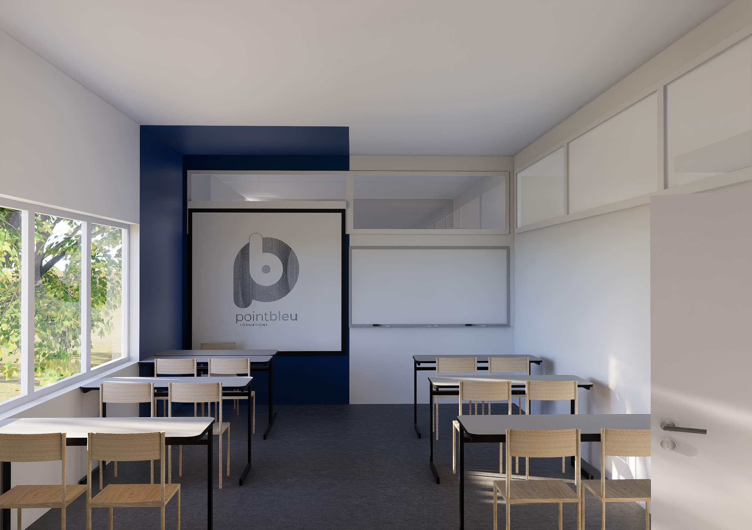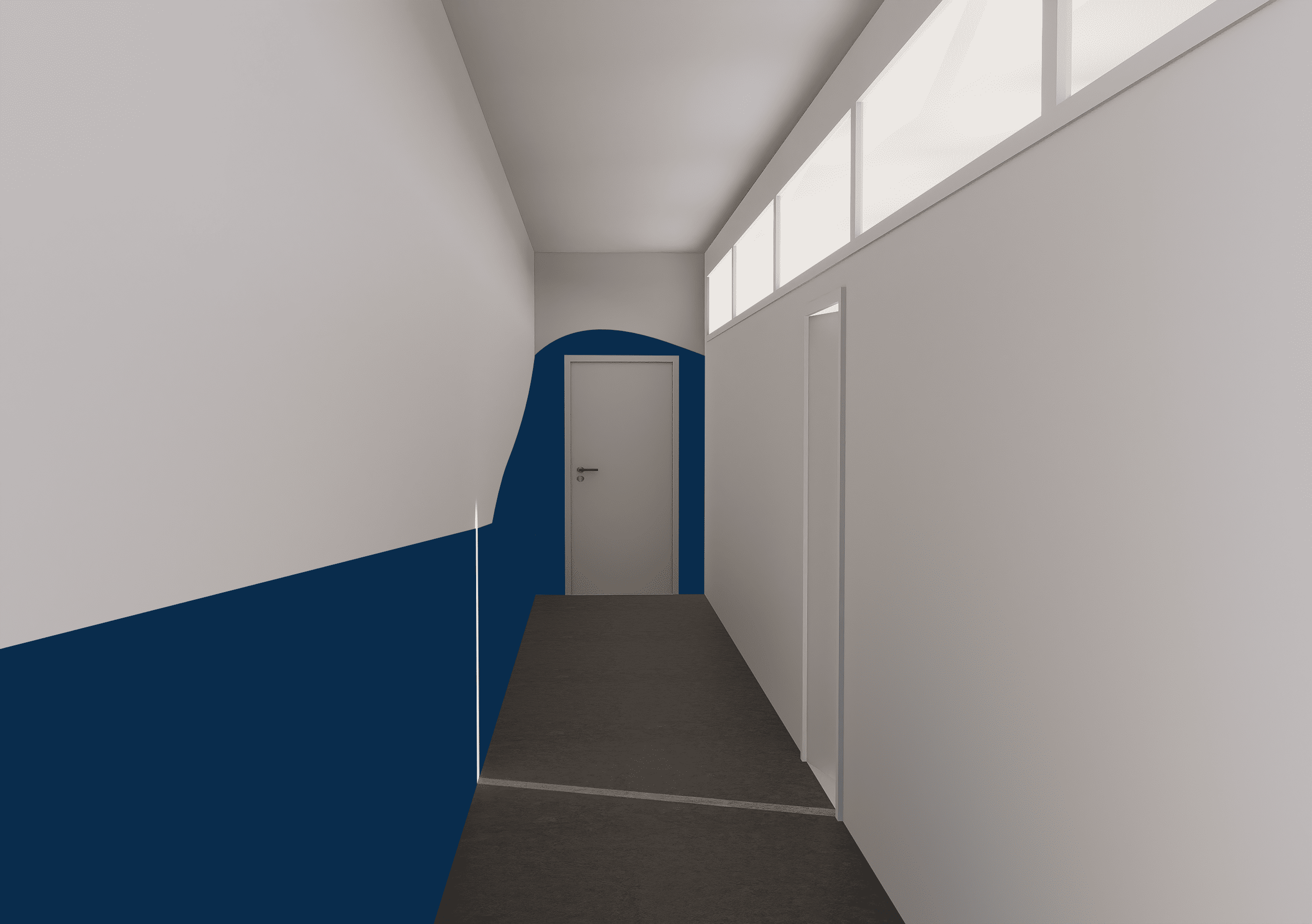 Les rendus 3D ont été simplifiés pour souligner les zones de travail murales, l’objectif n’étant pas d’obtenir un rendu photoréaliste et détaillé.